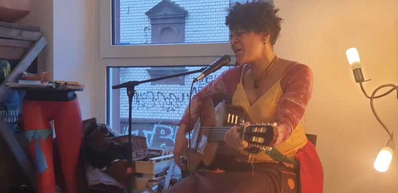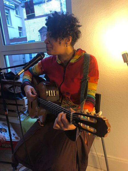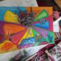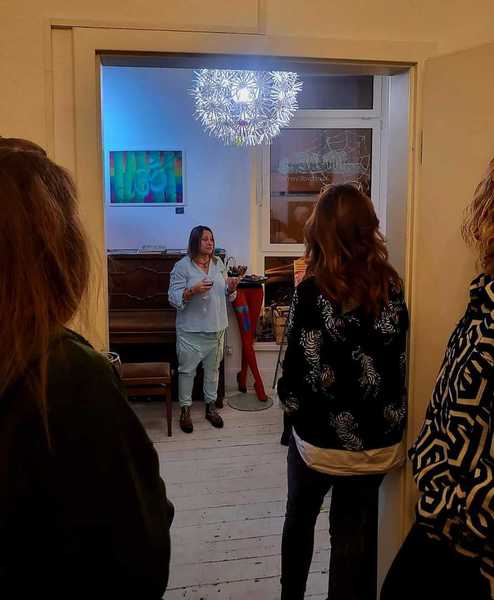 Mein Atelier ist mein Wohnzimmer, mein Maltisch ist der Esstisch und beim Malen seh ich oft bunter aus als mein Bild.